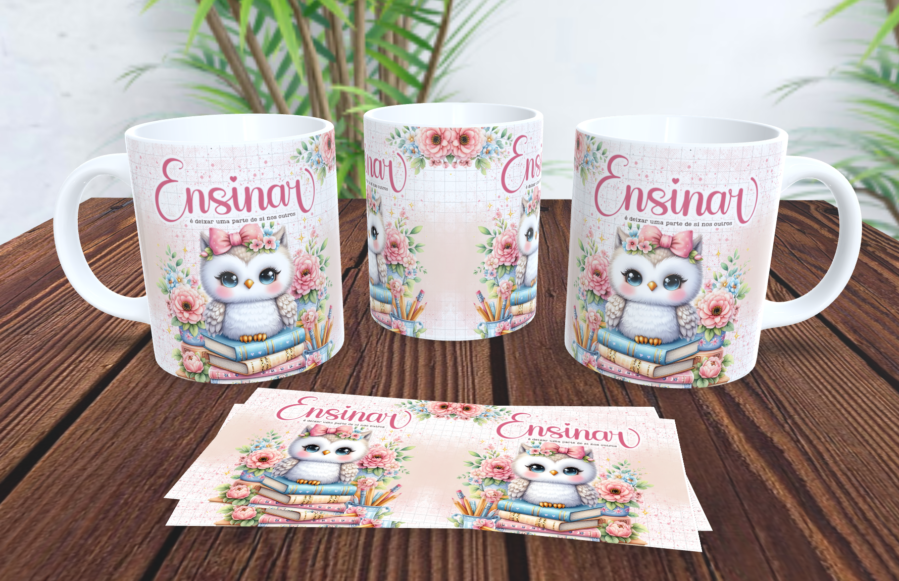 1 Caneca Porcelana 325ml Branca - Coruja Professor Ensinar